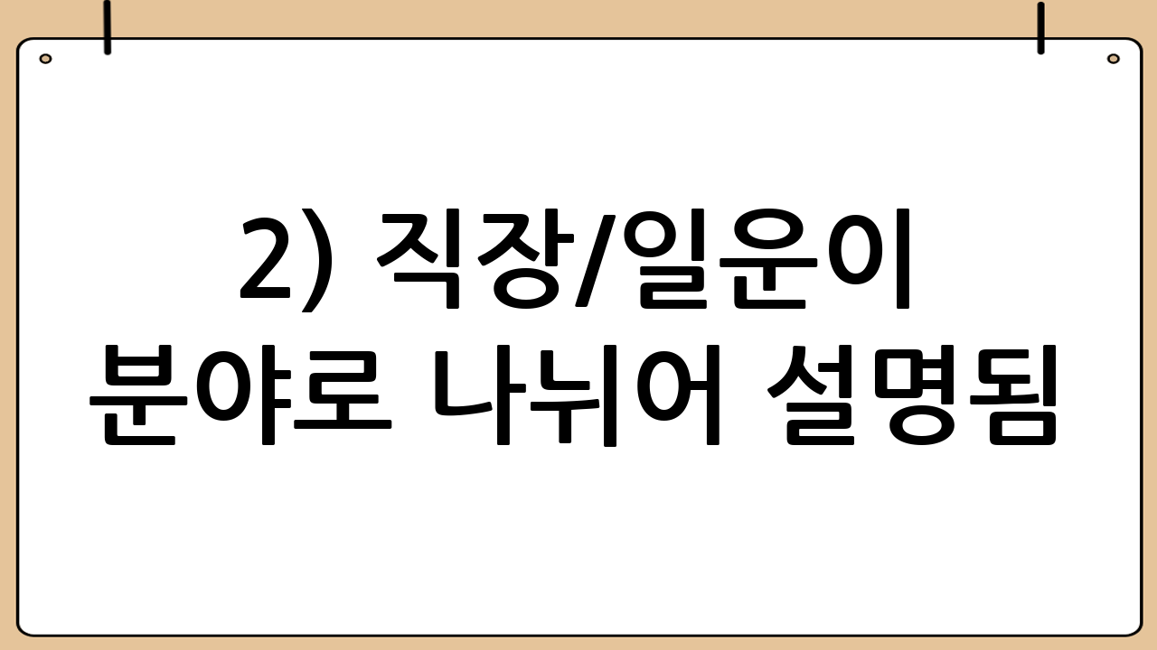 2) 직장/일운이 “분야”로 나뉘어 설명됨